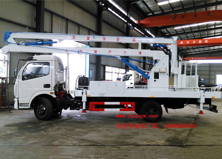 底盤說明:東風多利卡單排駕駛室,3800mm軸距,朝柴或云內國五發動機,5檔變速箱,前橋2.5噸,后橋5噸,7.50R16鋼絲胎,方向助力,斷氣剎,排氣制動,ABS,尿素罐。 上裝說明:高空作業車,又稱升降車。主要用于電力、通訊、路燈、有線電視,園林,廣告、攝景等。采用進口、國產換向閥及液壓油缸,換向平衡,操作靈活方便,支腿與工作臂互鎖,防止誤操作過位。采用雙液壓舉升油缸,穩定性及安全性更高;可360度旋轉;安裝雙向平衡閥。安裝四支液壓支腿,帶吊鉤,吊鉤吊1噸;上下均帶操作系統,選裝電控。 |