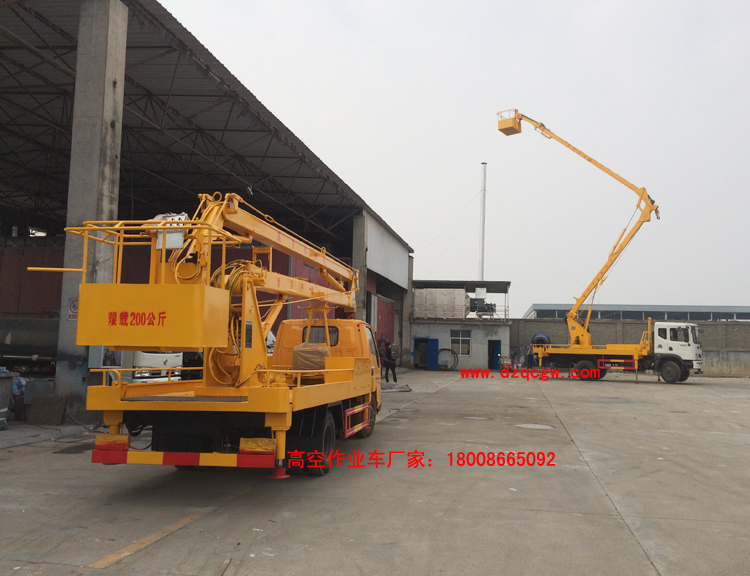 我公司生產的高空作業車,又稱升降車,高度有12米,14米,16米,18米,20米,24米,折臂和伸縮臂兩種類型。廣泛用于電力、通訊、路燈、有線電視,園林,廣告、攝景等。采用進口、國產換向閥及液壓油缸,換向平衡,操作靈活方便,支腿與工作臂互鎖,防止誤操作過位。采用雙液壓舉升油缸,穩定性及安全性更高;可360度旋轉;安裝雙向平衡閥。安裝四支液壓支腿,帶吊鉤,吊鉤吊1噸;上下均帶操作系統,選裝電控。