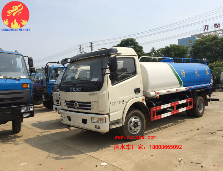 東風多利卡灑水車,我公司上了兩款國五公告,型號分別是SZD5110GSS5以及SZD5111GSSE5型灑水車。罐體有效容積均為7.35方,實際容積為標準9.3方。灑水車上裝標配前沖、后灑、側噴、工作平臺、綠化高炮、自流閥、消防接口,輸水管3米2根,億豐泵或金龍泵,控制方式為手動。是中型園林綠化專用車的不二之選。