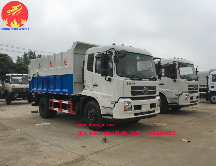 東風多利卡壓縮式對接垃圾車,3800mm軸距,多種可選國五發動機,鋼絲胎帶ABS。